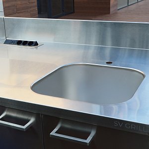 Гриль-зона разработана и изготовлена на нашем производстве по индивидуальным размерам заказчика. Изделие выполнено из нержавеющей стали, что обеспечивает долговечность, устойчивость к внешним природным условиям и легкость в уходе