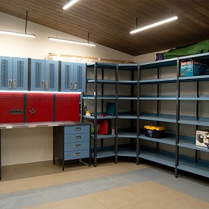 Создание удобного, функционального пространства, объединяющего рабочую зону и продуманную систему хранения. Требовалось максимально эффективно использовать площадь помещения, разместив мебель и стеллажи так, чтобы в гараже всегда поддерживался порядок и всё необходимое было под рукойПлощадь и реализация