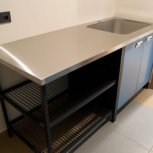- Верстак с широкой столешницей из нержавеющей стали - надёжная поверхность для любых работ.