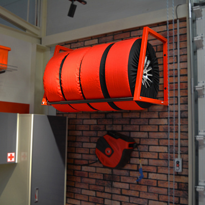 Конструкция разработана с акцентом на простоту использования и долговечность: колёса легко разместить и снять с полки, а стойкая металлическая рама выдерживает значительные нагрузки.