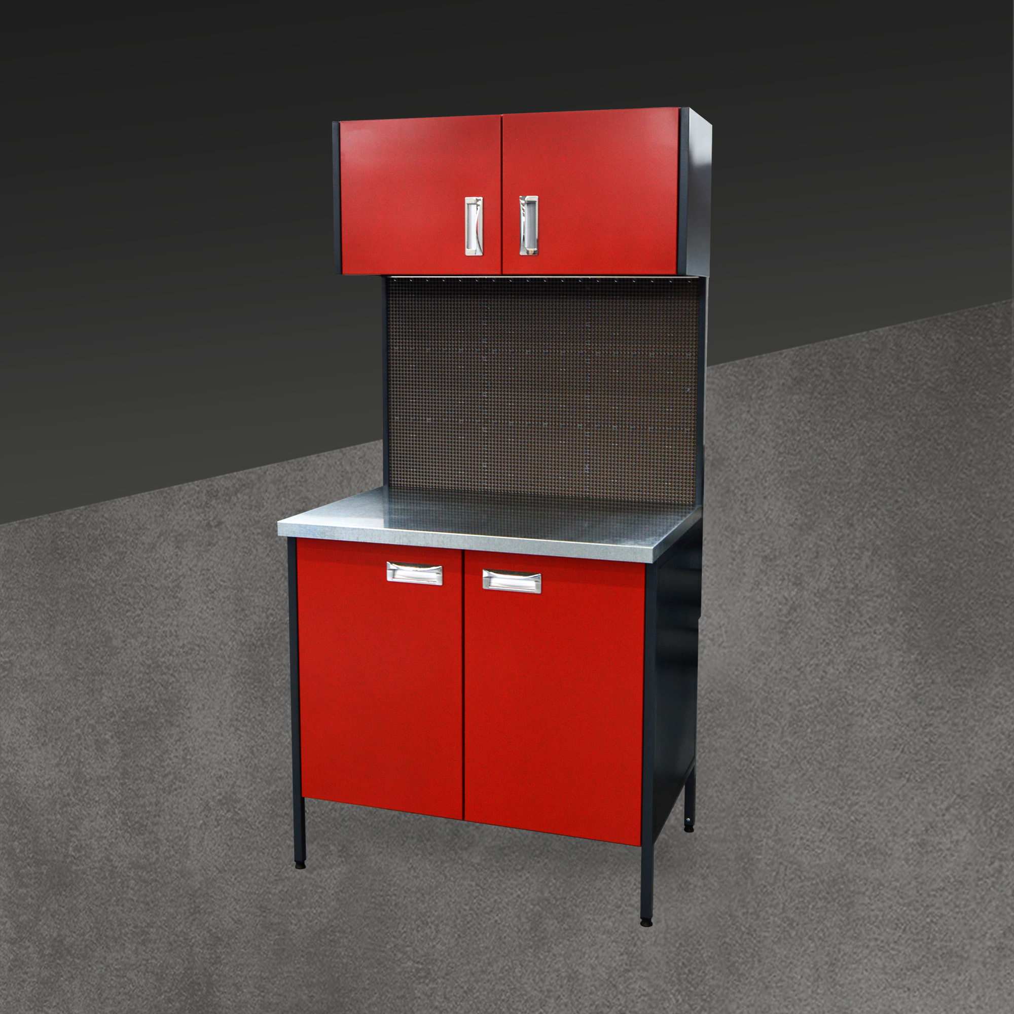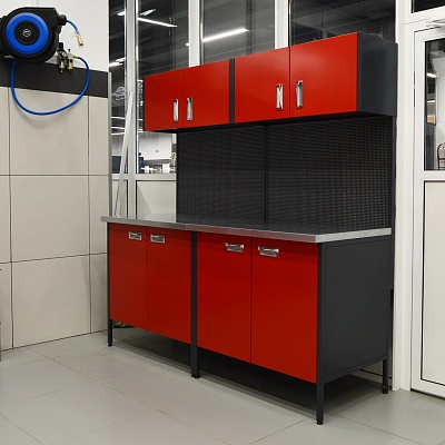 Функциональный верстак с навесным шкафом — универсальное решение для обустройства рабочей зоны в гараже, мастерской, сервисе или подсобном помещении. Подходит для хранения инструментов, оборудования, расходников и выполнения различных технических задач.
